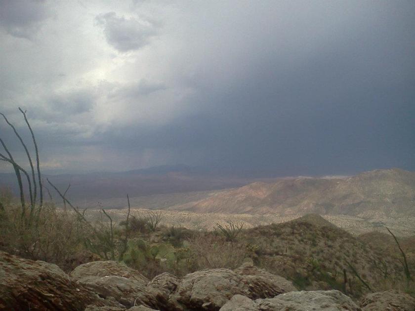 Our adventures rolled in like thunder. It wasn’t an easy time, but miracles did occur daily. And the sheer experience of living in the Sonoran desert during monsoon season is exciting enough. If you aren’t aware yet, in the summer time, in the Arizona desert, it’s shade that all living creatures seek. It’s shade—before the rains begin—that provides relief and rehabilitation from the relentless desert sun. The shade of a tree, the shade of a bush, the shade of a tiny blade of grass—anything to defer the radiant sun that seeks to infrare itself upon the earth, absorbing directly or becoming ambient heat. The luscious, liquescent flesh of animals—particularly the vulnerable flesh of humans—is the perfect surface to absorb the sun’s rays and burn. The infamous sunburn. Rain and Shooter—my wolf pups—have no problem with this. They never burn, with their numerous layers of fur. Even their vision is protected by dark black rings that encircle wild yellow eyes, cutting back on sun glare and absorption when scanning the landscape for prey or predator. I’m not as perfectly created by nature to triumph in the open range, and the desert reminds me of this. I’m usually lathered in sunscreen, wearing a hat, and I’m always on the watch for confident predators that might land me at the bottom of the food chain. Thank you, large brain, for compensating for my weak, pulpy, defenseless composition and keeping me alive thus far.