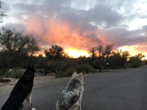 We ran early in the morning like flood waters with sharp teeth and punctual cadence, and we ran fast—wolf fur thick and wavy in the warm desert winds. I had a bottle of water in each hand, mostly for my furry friends whose body temperatures were 3-4 degrees warmer than my own. The sun was milder in the mornings, but the air was still heavy and humid, already anticipating cumulus build-up over the local sky islands—the Santa Catalinas, the Santa Ritas, and the Rincons, to name the closest and largest. The wind rushes over these igneous rock formations (at approximately 10,000 ft.), building pressure systems in a time of year when moisture is spinning counter-clockwise out of the Gulf of Mexico, borrowed from the Tropical Cyclone season in the Caribbean and the heated ocean waters close to the equator. This is the monsoon season of the American Southwest.